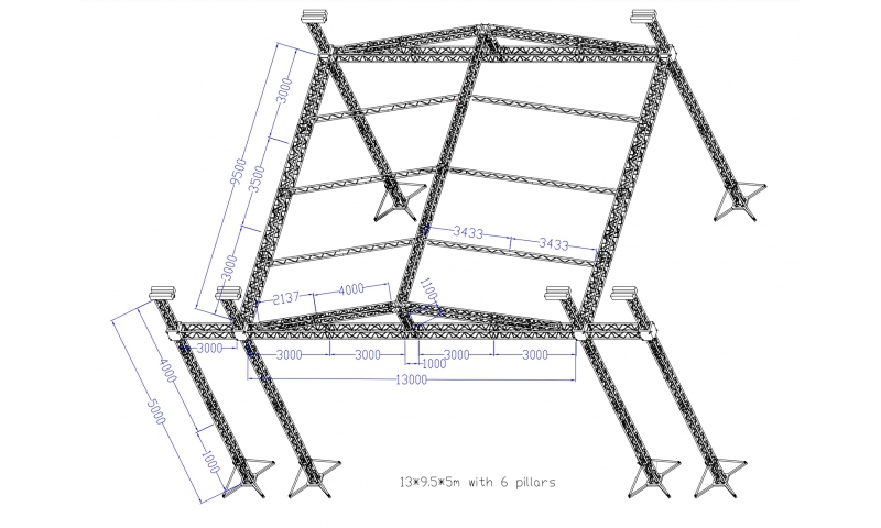Topfinger peak roof truss 13*9.5*5m with 6 pillars ( Code: TFR-PRT08 )