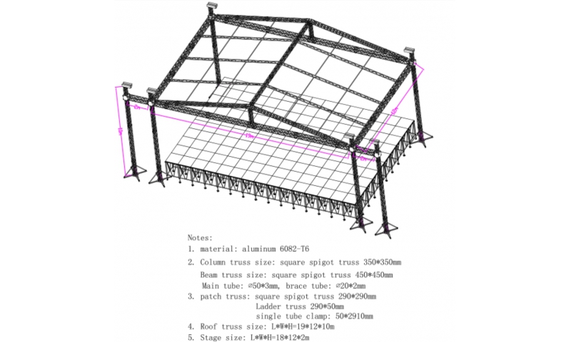 Topfinger Peak Roof Truss ( Size: 19*12*10m & Stage size: 18*12*2m & Code: TFR-PRT09 )